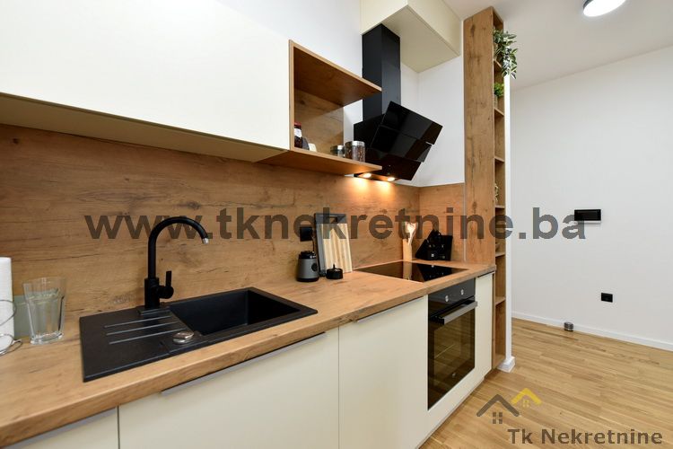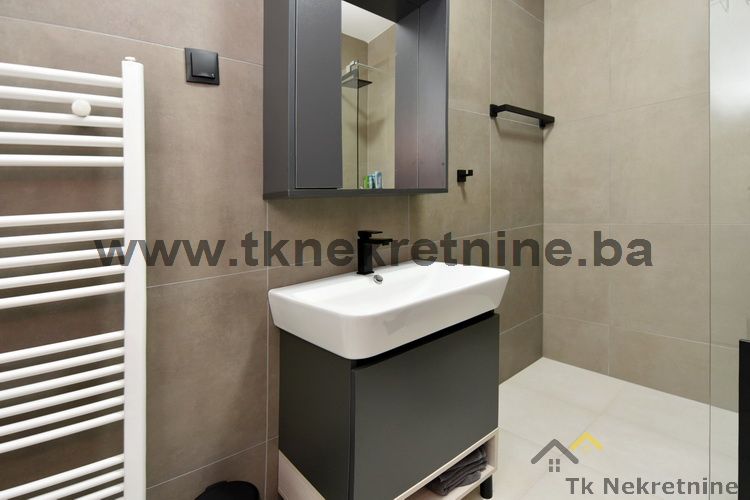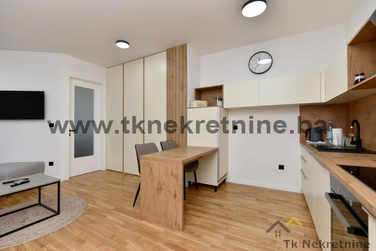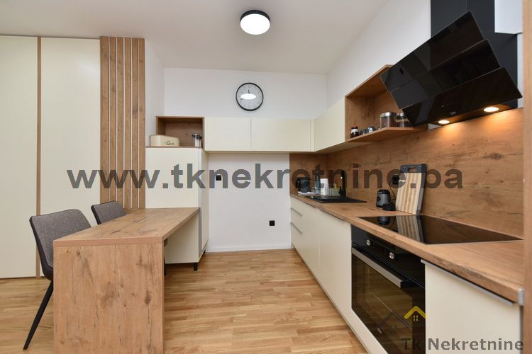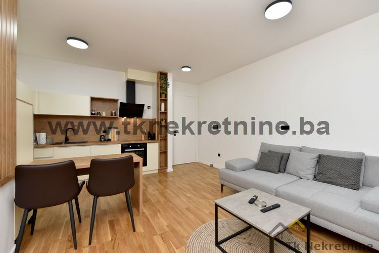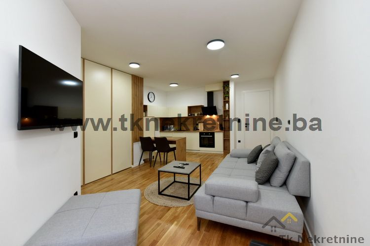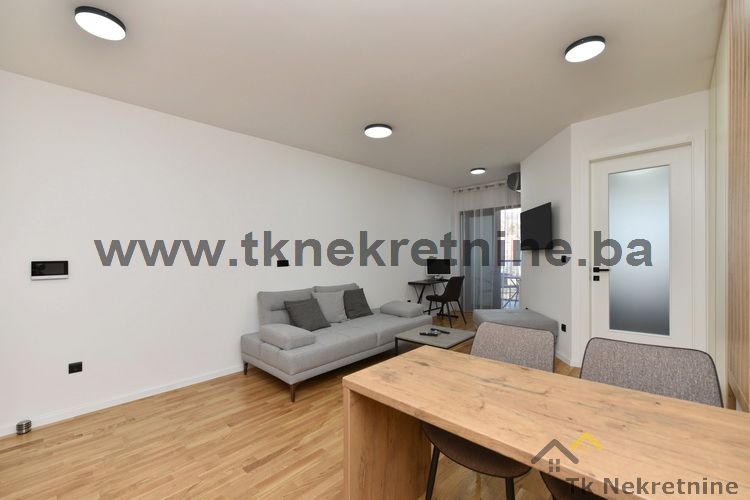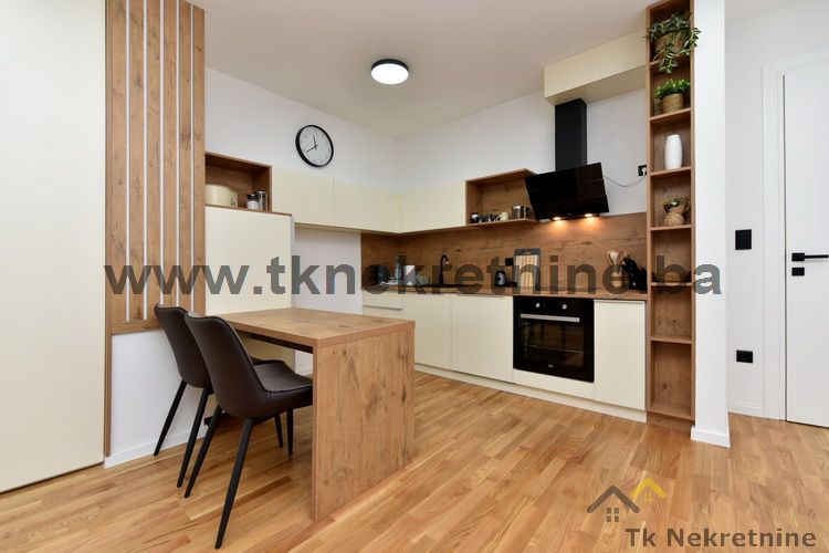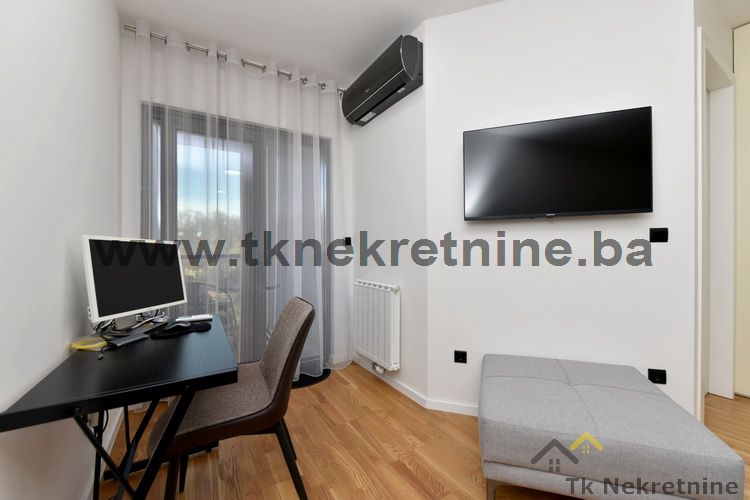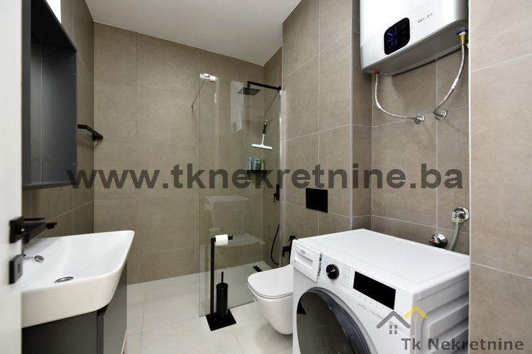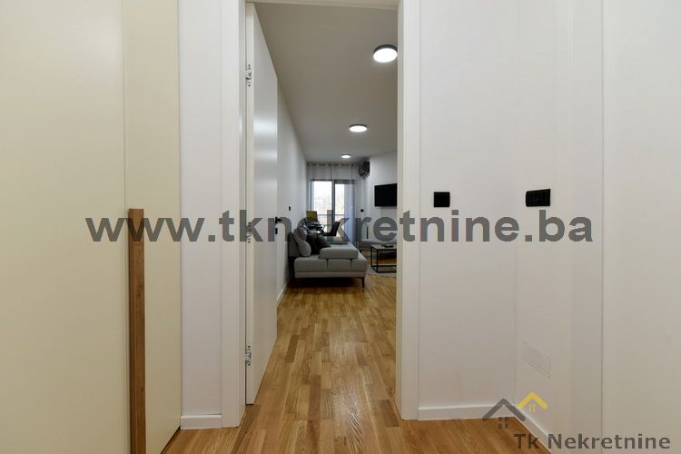 NAPOMENA: Kompletan namještaj u stanu, ugradbena kuhinja sa električnim uređajima (ravna ploča, pećnica, napa, mašina za suđe i frižider), mašina za veš, ugradbeni plakari, rasvjetna tijela, TV i klima uređaj ostaju budućem kupcu GRATIS. Uz ovaj stan je obavezna i kupovina vanjskog parking mjesta. Cijena parking mjesta iznosi 20.000 KM i nije uračunata u cijenu stana.