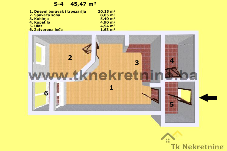 - Površina nekretnine: 45,47m²
