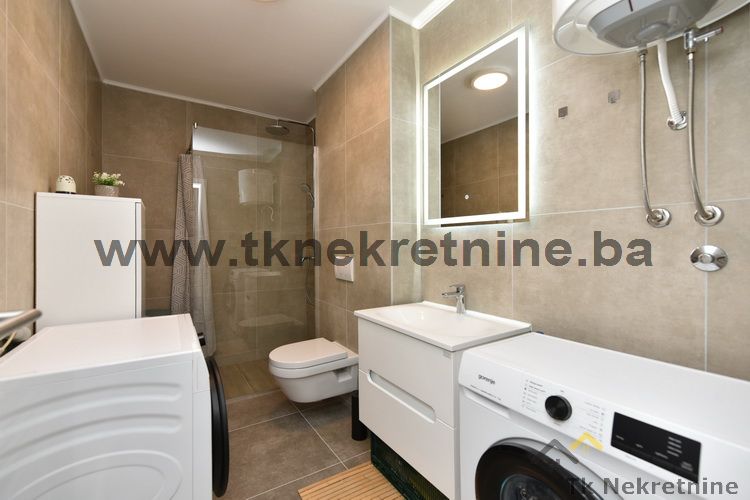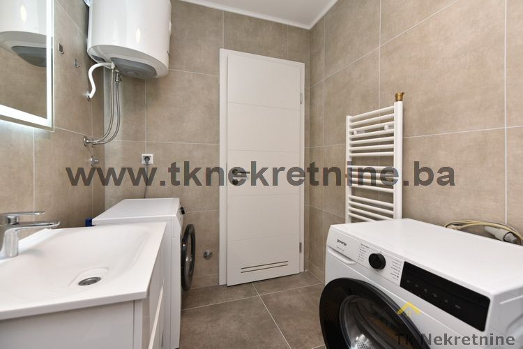 NAPOMENA: Kompletan namještaj u stanu, ugradbena kuhinja sa električnim uređajima (ravna ploča, pećnica, napa, mašina za suđe i frižider sa zamrzivačem), mašina i sušilica za veš, ugradbeni plakari u hodniku i ostavi, kupatilski namještaj, komarnici, plafonjere, tepisi, zavjese, TV i klima uređaj ostaju budućem kupcu GRATIS.