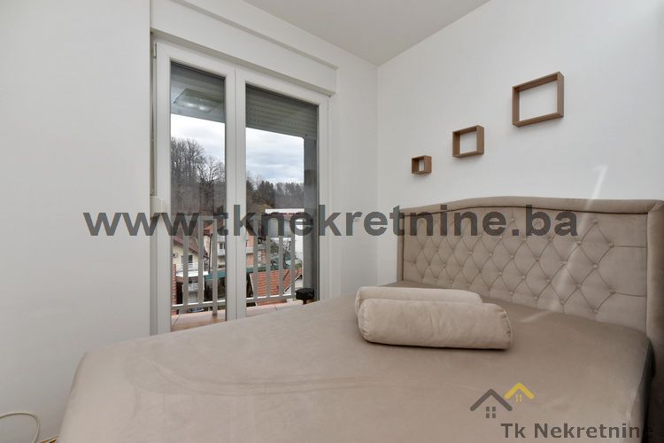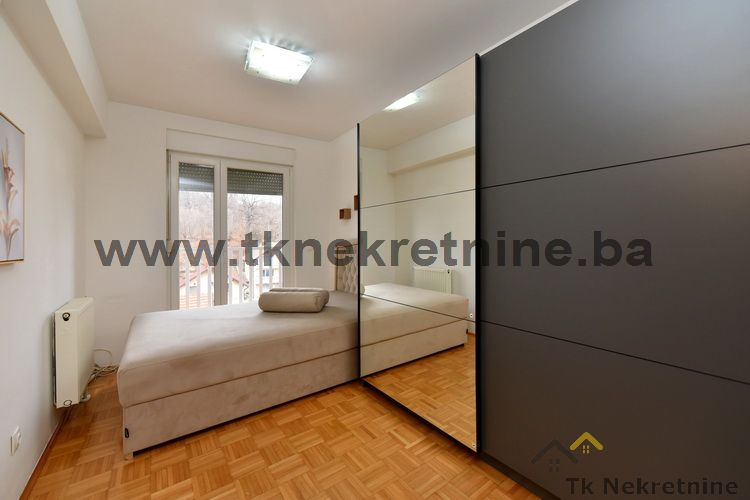 Iznajmljuje se lijep, potpuno i kvalitetno namješten dvosoban stan površine 40 m². Nalazi se na 4. spratu zgrade novije gradnje sa liftom, pored “PETROL” benzinske pumpe i Behram-begove medrese, u ulici Ivana Markovića – Irca, u naselju Irac. Stan se sastoji od dnevnog boravka sa kuhinjom, spavaće sobe, kupatila, hodnika, ostave i otvorene lođe. Posjeduje modernu ugradbenu kuhinju sa ravnom pločom i pećnicom, napu, frižider sa zamrzivačem, veš mašinu, sušilicu za veš, LED TV, klima uređaj, TXTV kablovsku televiziju i internet. U spavaćoj sobi i u ostavi se nalaze plakari za odjeću. Glavne karakteristike ovog stana su mali režijski troškovi, idealan raspored sa svijetlim i prozračnim prostorijama, kvalitetan i moderan namještaj, istočna orijentacija i lokacija sa svim gradskim sadržajima u blizini. Stan posjeduje podrumsku prostoriju, vlastiti vodomjer i sat za struju, a centralno gradsko grijanje se obračunava po kvadratnom metru. Ulaz u zgradu je obezbijeđen video nadzorom i šifratorom.