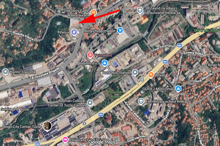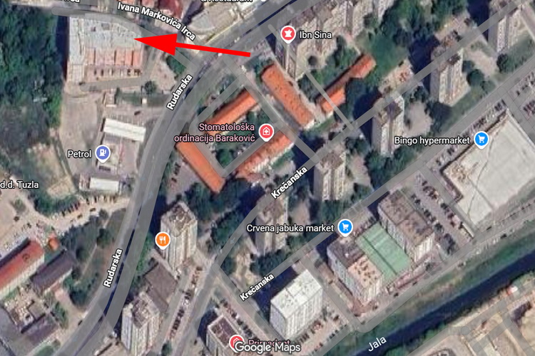 Stan se nalazi na 4. spratu zgrade novije gradnje sa liftom, pored “PETROL” benzinske pumpe i Behram-begove medrese, u ulici Ivana Markovića – Irca, u naselju Irac. U krugu od 700 metara se nalaze: supermarketi “Bingo”, “Crvena jabuka”, “DM” i “Mercator”, “Bingo City Centar”, T.C. “Tuzlanka”, stadion “Tušanj”, Dom zdravlja, Poliklinika “Irac”, ugostiteljsko-trgovački objekti, obdaništa, osnovne i srednje škole, pošta i taxi/autobuska stajališta.