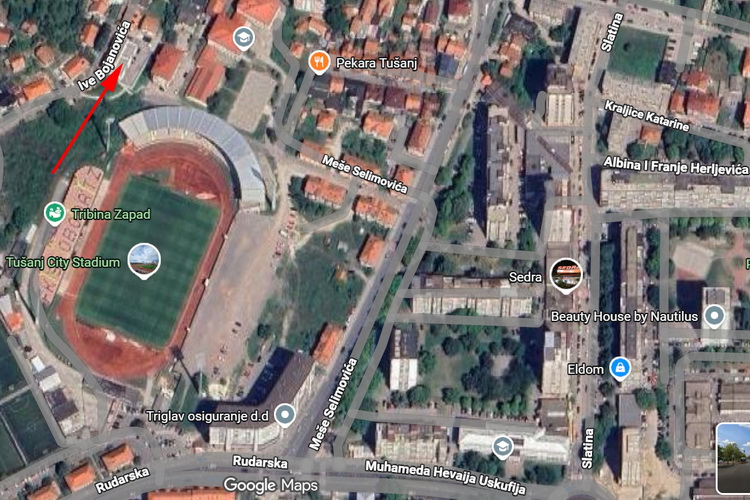 Nekretnina se nalazi na 3. spratu novoizgrađene stambene zgrade bez lifta, u ulici Ive Bojanovića, u naselju Tušanj. Zgrada u kojoj se nekretnina nalazi je smještena na mirnoj lokaciji sa obiljem zelenila i izdvojena je od gradske buke. Lokaciju karakteriše neposredna blizina svih sadržaja potrebnih za ugodan način življenja. U neposrednoj blizini se nalazi veliki park sa igralištem za djecu, a u krugu od 300 metara supermarket “Bingo”, poliklinika “Salus”, osnovna škola, banke, apoteke, ugostiteljsko-trgovački objekti, stadion “Tušanj”, tržni centar “Slatina”, autobusko/taxi stajalište i drugi sadržaji.