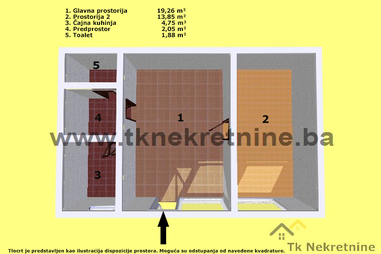 Navedena tražena cijena predstavlja preporučenu cijenu za predmetnu nekretninu. Vlasnik nekretnine zadržava pravo da u svakom trenutku do pismenog zaključenja Rezervacije, Predugovora, Ugovora o zakupu ili Ugovora o kupoprodaji nekretnine, prihvati cijenu koja može biti niža, ista ili viša od preporučene, ponuđenu od strane kupca/zakupca kojeg vlasnik odabere uz posredovanje agencije.